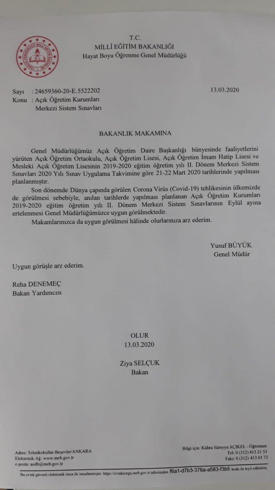 Dönem sınavları meb sınav takvimine.